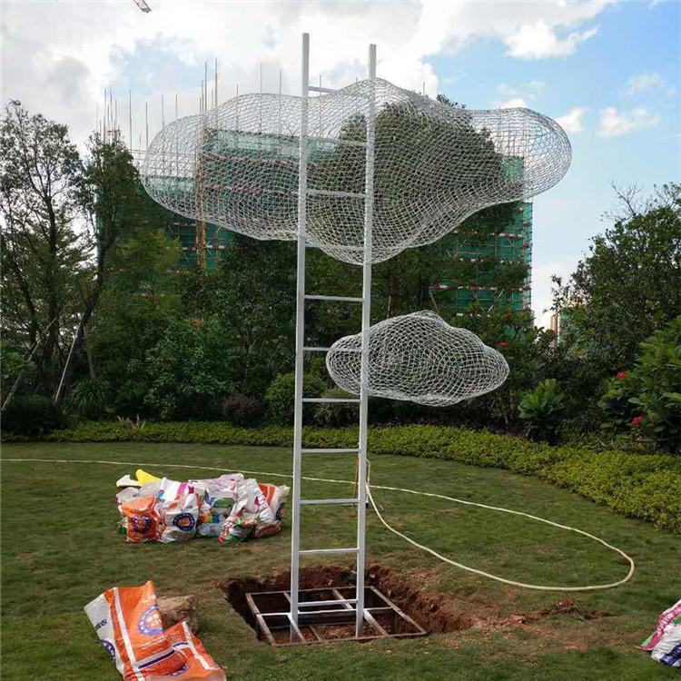 不銹鋼云朵造型雕塑,現(xiàn)在比較常見的是使用不銹鋼絲制作的編織效果的云朵雕塑,在一些地產(chǎn)項(xiàng)目里可以看到這樣的雕塑,一般云朵雕塑還會和抽象人物結(jié)合起來,形成一個有趣生動的情景小品。