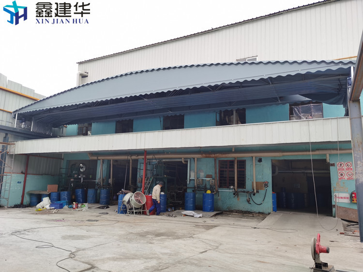 雨棚使用非常方便,只要2人輕輕拉開就可以使用了,不用的時(shí)候輕輕推回原處就可以了。它不占地方又可以為你遮風(fēng)擋雨,真是太方便了,還可以根據(jù)客戶提供尺寸定做 安裝方便!我們的布料是較厚的阻燃布料,厚度0.51.防雨防曬防火防腐,使用壽命5到6年,材料是鍍鋅鋼管,立柱是63*1.3的圓管,主架底盆40*20的1.2的厚度方通。