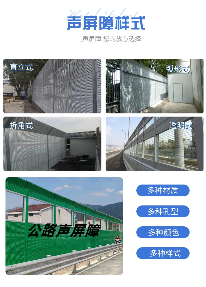 四川高速公路隔聲屏障,金屬隔音墻,隔音板,制造工廠。由于公路聲屏障的類型各異,所以在降噪效果、造價、景觀方面各有特點。因此,在選用公路聲屏障時,應(yīng)根據(jù)受聲點的敏感程度、當(dāng)?shù)氐慕?jīng)濟狀況、自然環(huán)境來合理選擇適用的公路聲屏障類型。