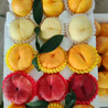 蟠桃 果實發(fā)育期115克,平均單果重220克,大果可達500克,果面底色,套袋金,果肉,自花結果,8月中旬成熟產(chǎn)量3000-4000斤